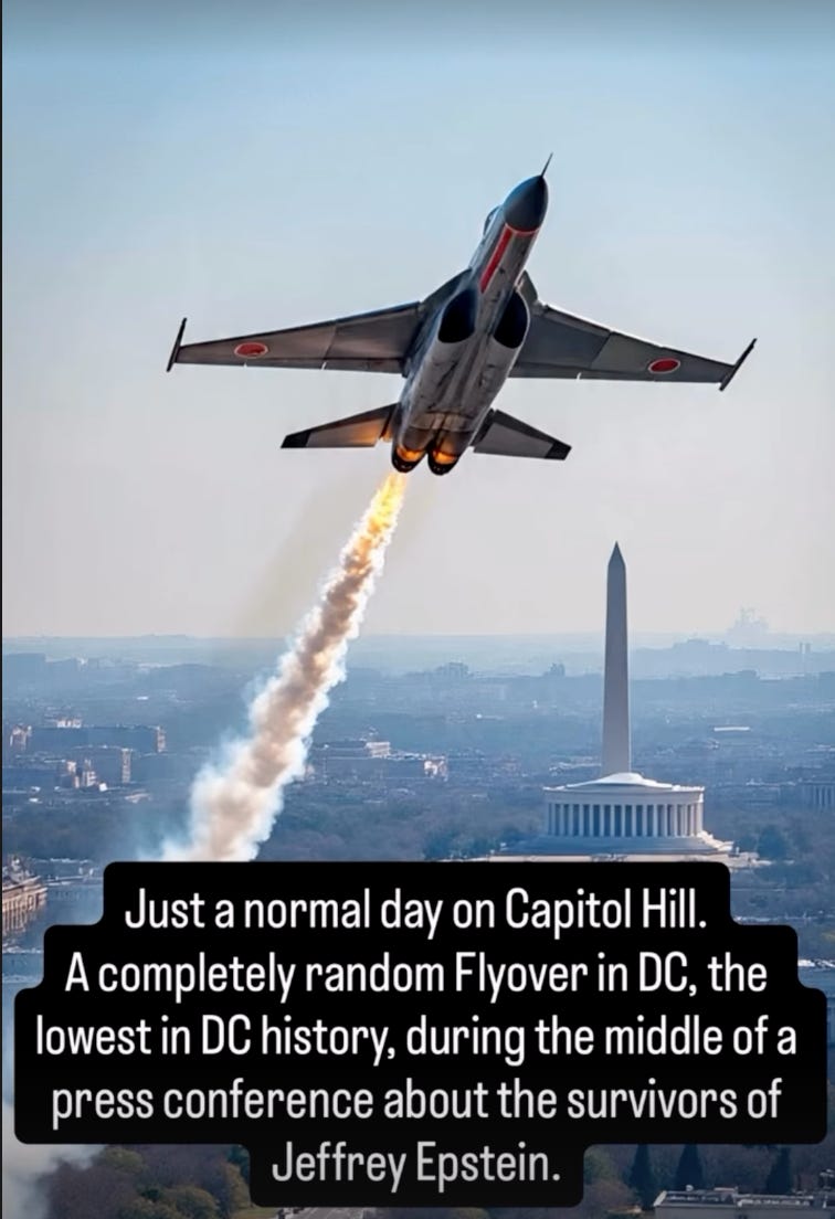 Today, Reps Ro Khanna and Thomas Massie held a press conference with Epstein survivors to call for the full release of the Epstein files. Trump and the DOJ have refused to release the unredacted list — Trump went to far as to call the whole thing a ‘hoax.’ During the conference, planes flew overhead, forcing survivors to stop talking — a flyover was scheduled for the same time as the Epstein press conference. Coincidence? Probably not.