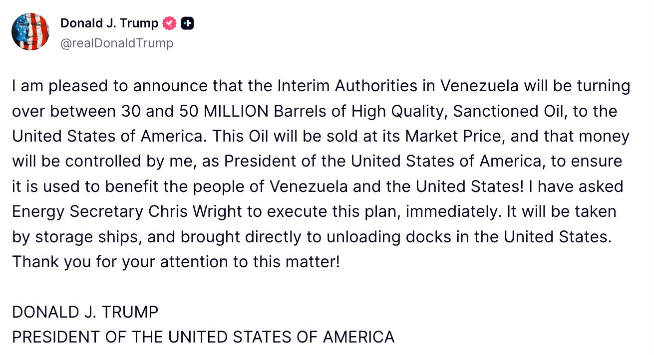 On one hand, Trump says he cares about drug charges and the Venezuelan people, but on the other, he deports them to foreign gulags without due process and pardons people with the exact same drug charges. Megyn also makes it clear that oil is the real reason for military action in Venezuela — demonstrating just how explicit Trump has been in his attempts to make himself richer through the office of the President. Yesterday, Trump posted that Venezuela will be giving the US 30-50 million barrels of oil — and that Trump will control the money that comes from it.
