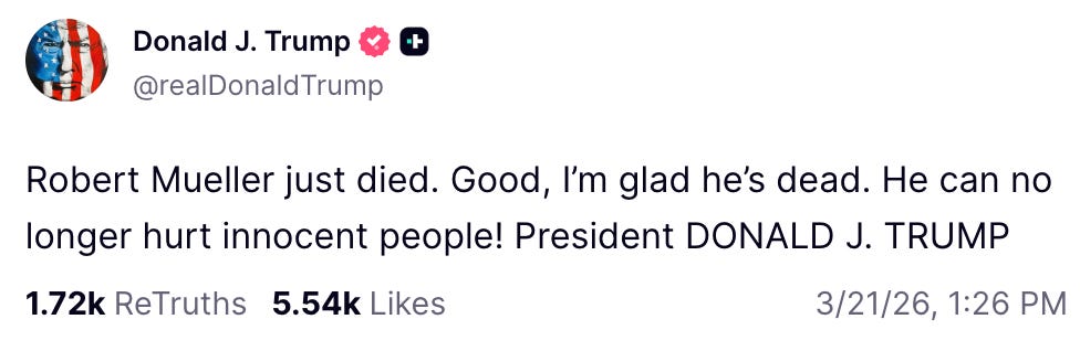 Former special counsel Robert Mueller died at age 81 on Friday night, according to his family. Mueller, a Bronze Star combat veteran known for his devout faith, devotion to his family, and public service, led the probe into Russian interference in the 2016 election, earning the ire of Trump